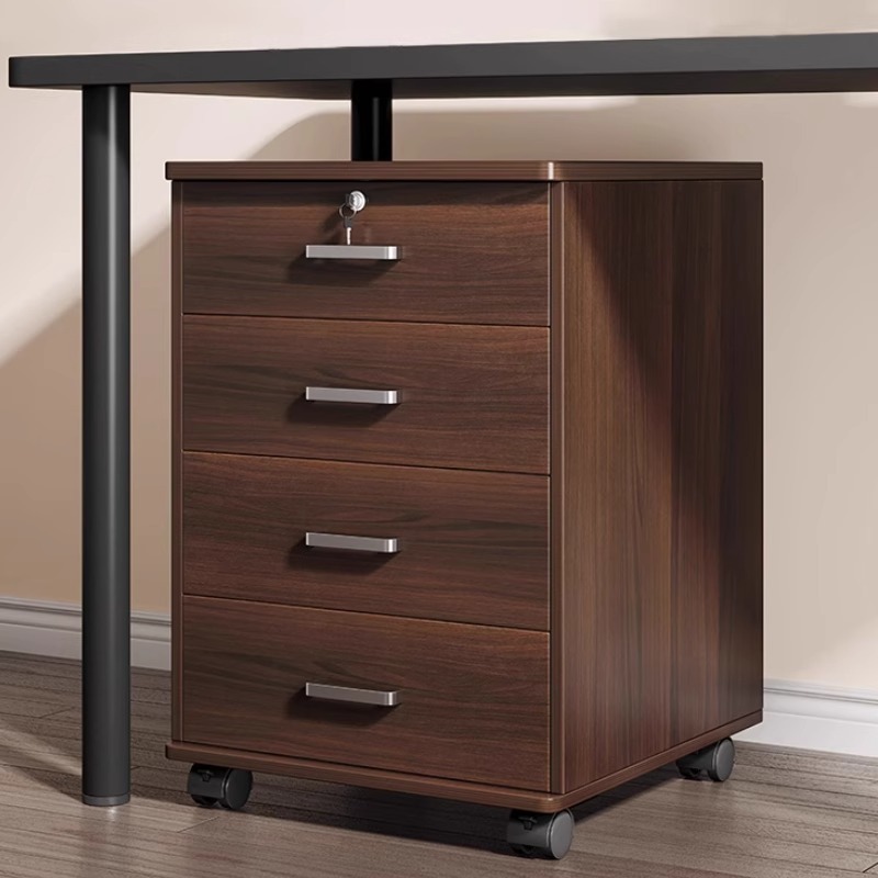Kabinet file kayu kantor dengan kunci kabinet laci loker bergerak dengan roda di bawah lemari penyimpanan file meja