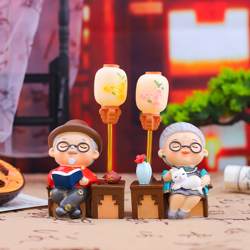 Gaya Tiongkok Baru Santai Orang Tua dan Wanita Tua Sering Bertemu Lampu Kecil Ornamen Dekorasi Meja Ornamen Hadiah Liburan Grosir