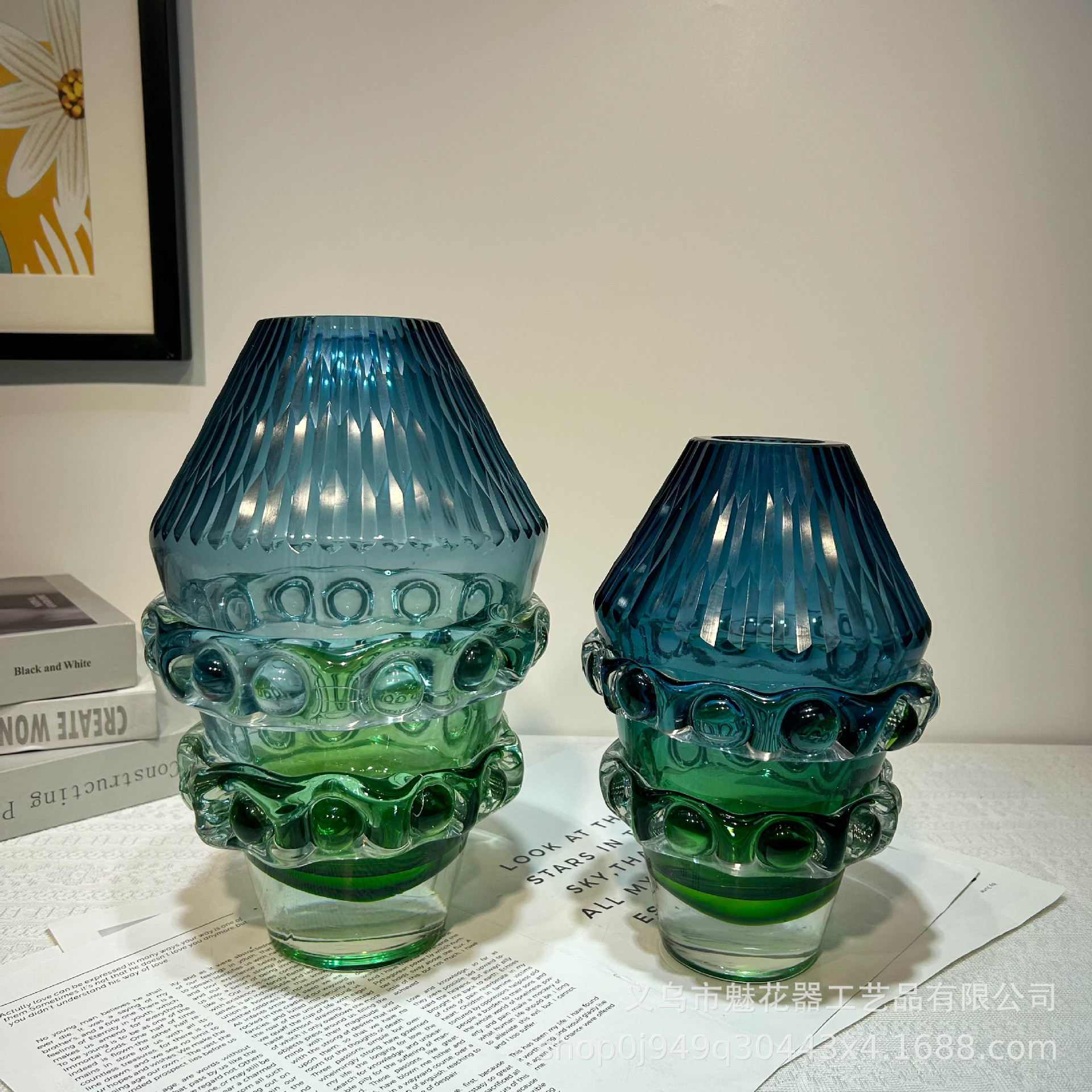现代创意柱子琉璃花瓶家居餐桌酒柜轻奢摆件样板间高级装饰插花器