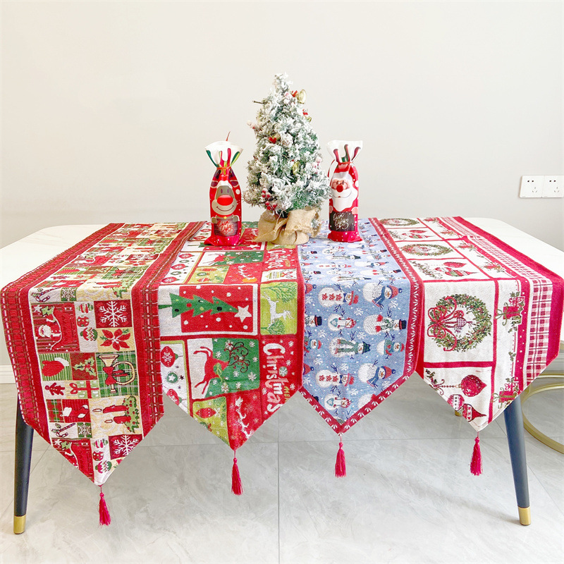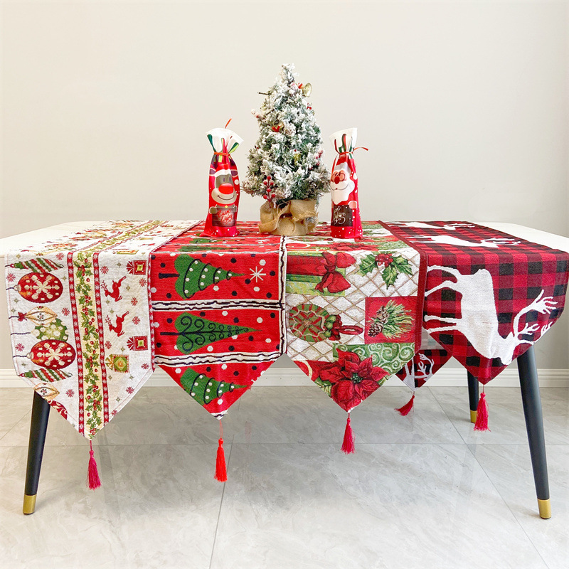 Perlengkapan dekorasi Natal baru Natal linen dicetak taplak meja taplak meja dekorasi taplak meja tatakan