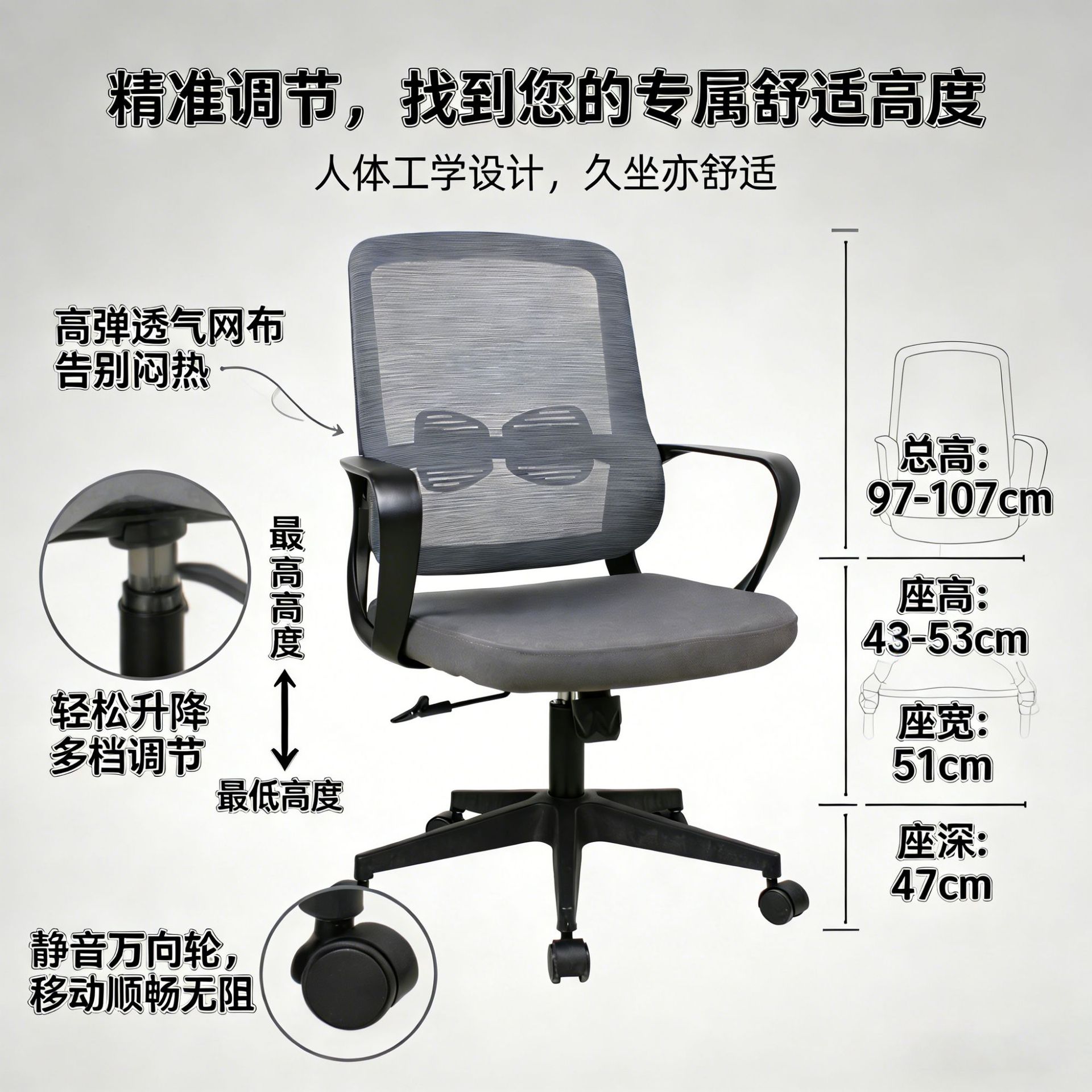 Grosir Kursi Kantor Kursi Komputer Rumah Tangga Roda Wanxiang Pelindung Pinggang Kain Jaring Staf Kursi Konferensi Staf Kursi Pekerja Naik Turun Kursi Perdagangan Luar Negeri