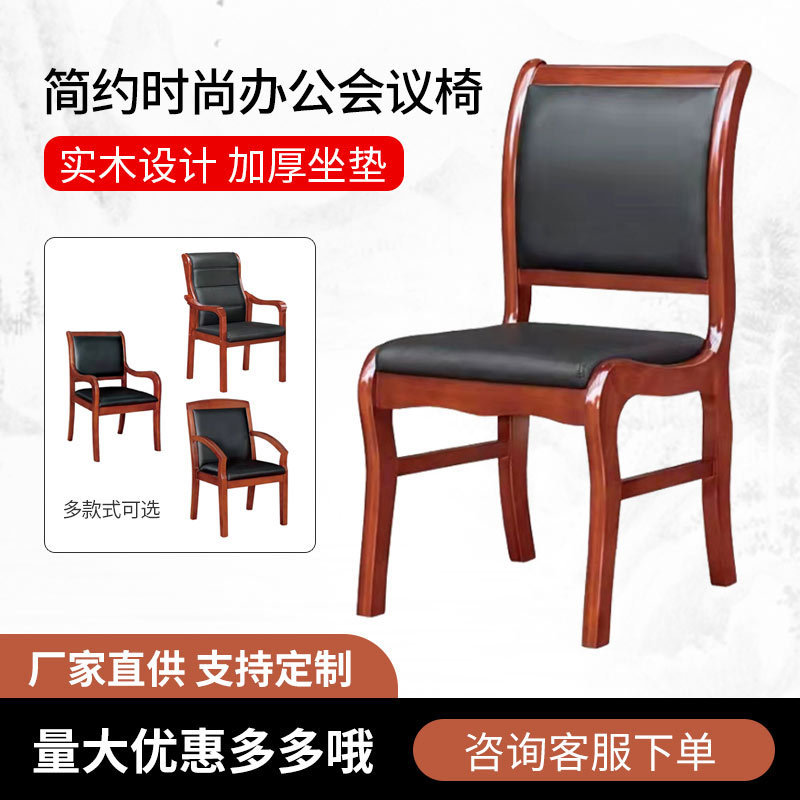 Kursi kantor modern sederhana tanpa sandaran tangan, kursi konferensi kayu solid, sandaran tangan, kursi latihan mahjong ruang kartu dan catur