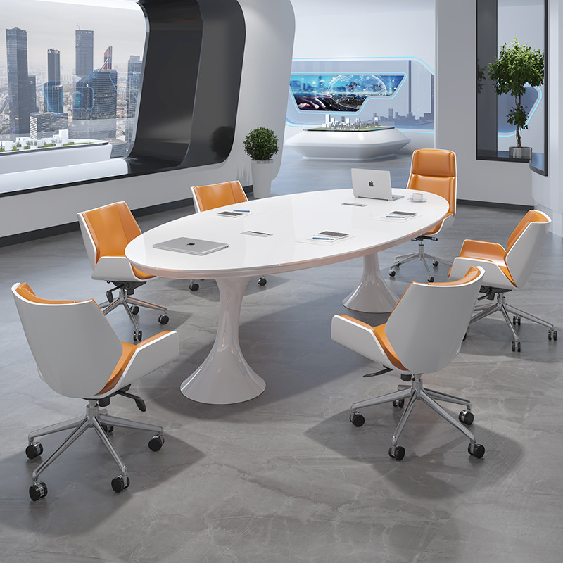 Meja konferensi putih cat meja panjang kreatif Oval, sederhana modern kecil ringan mewah Nordik negosiasi latihan meja