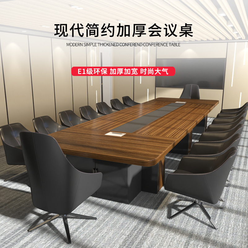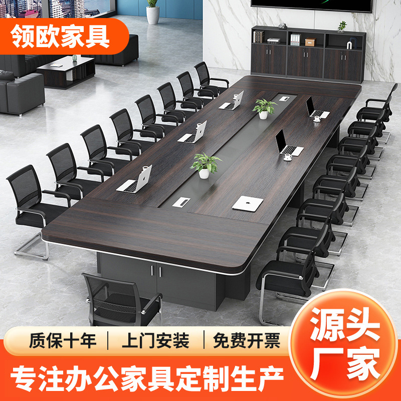 Pasokan langsung pabrik cat sederhana meja konferensi modern meja kulit kayu solid dan kursi kombinasi strip cat meja panjang konferensi