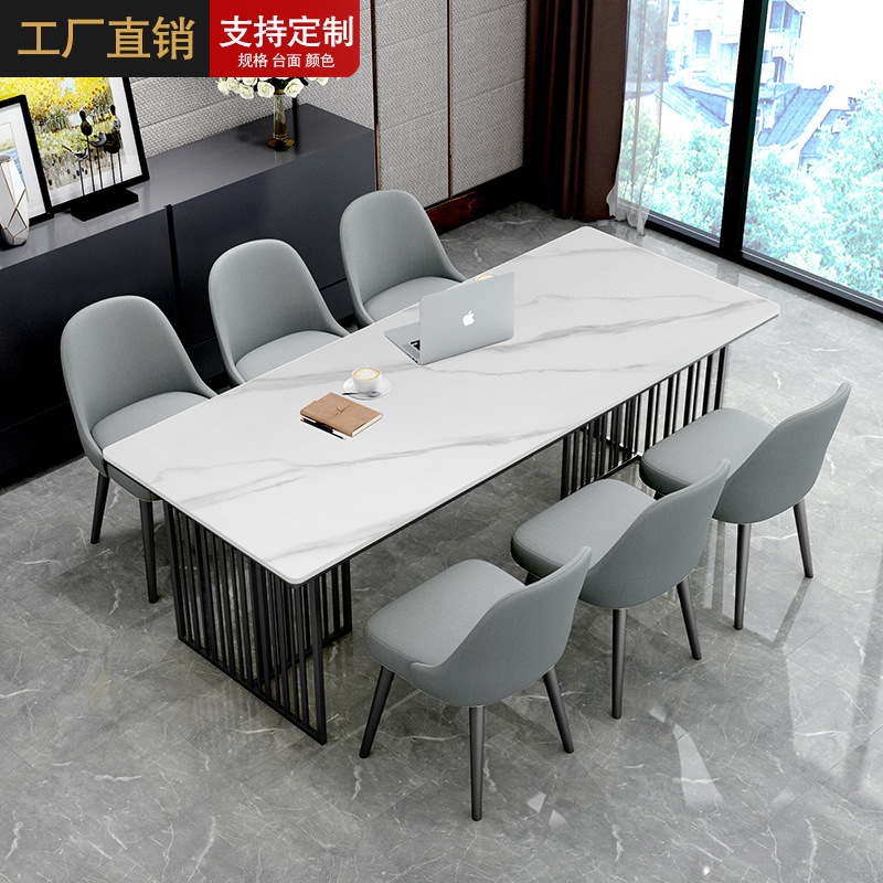 Meja konferensi piring batu marmer Nordic, meja strip meja kerja, Meja negosiasi minimalis, meja kantor dan kursi kombinasi