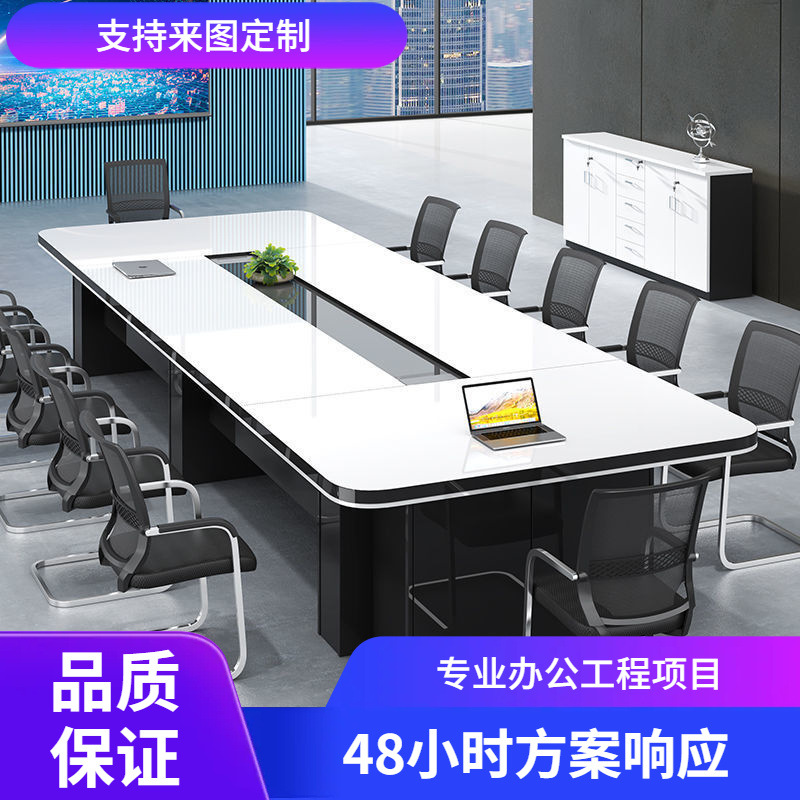 Meja panjang konferensi cat, sederhana modern Putih pelatihan meja negosiasi meja konferensi ruang dan kursi kombinasi besar