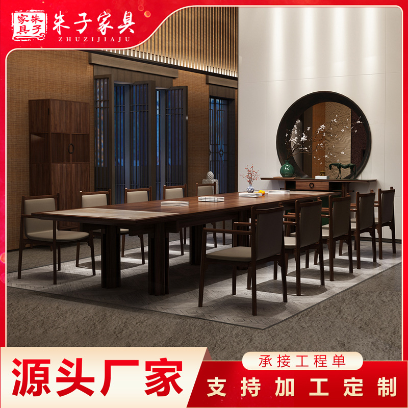 Meja Konferensi Besar Meja Panjang Gaya Tiongkok Baru Kayu Solid Multiplayer Meja Pelatihan Rapat Meja dan Kursi Kombinasi Perabot Penerimaan Tamu