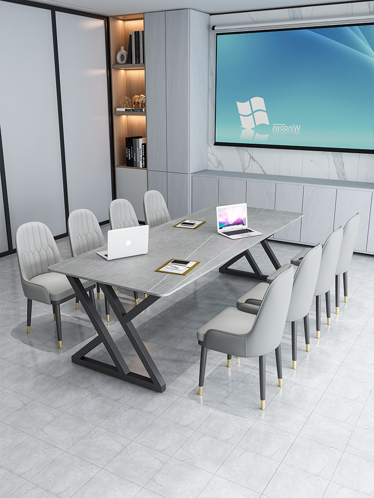Meja konferensi piring batu, cahaya mewah meja panjang Penerimaan kreatif meja kerja persegi panjang sederhana meja penerimaan kantor dan kursi