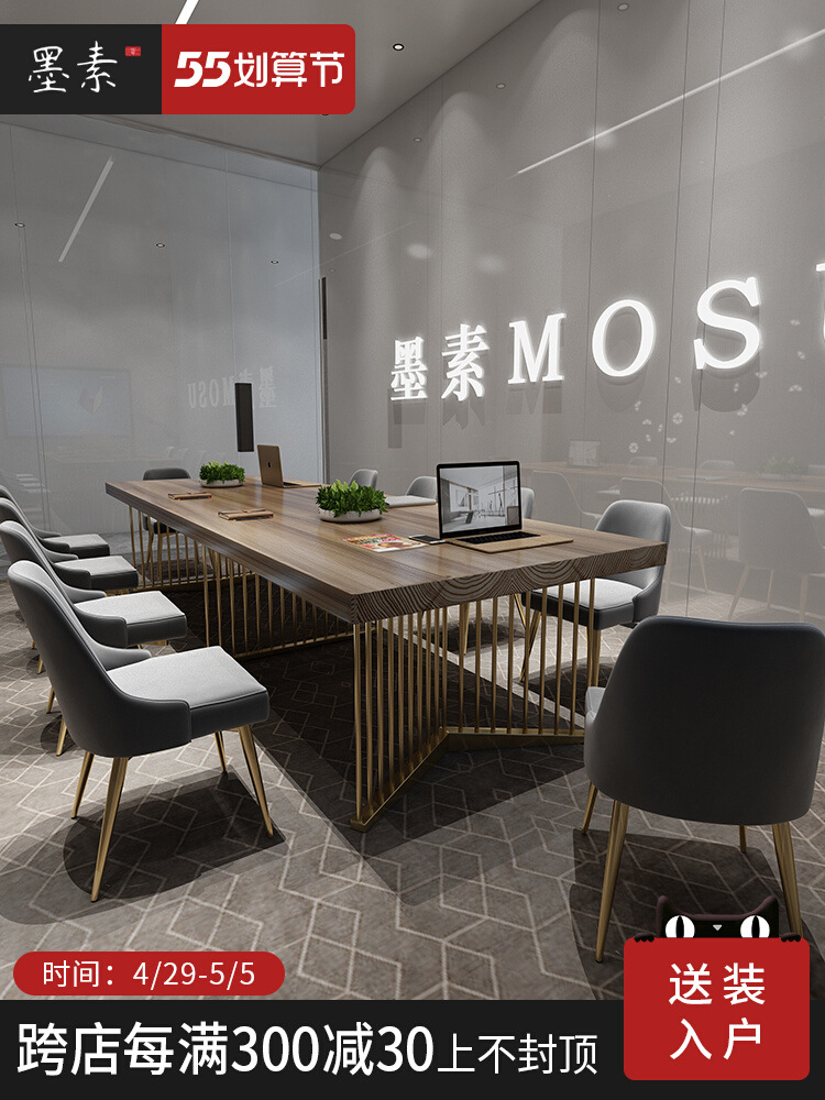 Meja konferensi meja panjang sederhana modern meja dan kursi kombinasi negosiasi pelatihan besar dan kecil kantor mebel log