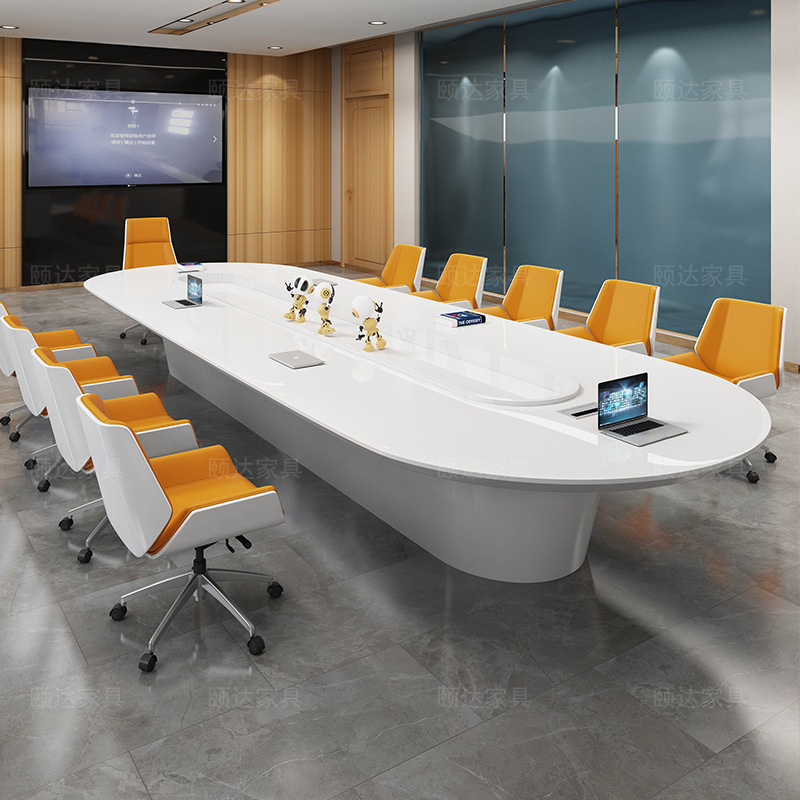 Meja panjang konferensi cat putih, Meja negosiasi pelatihan modern sederhana meja oval kantor besar dan kombinasi kursi