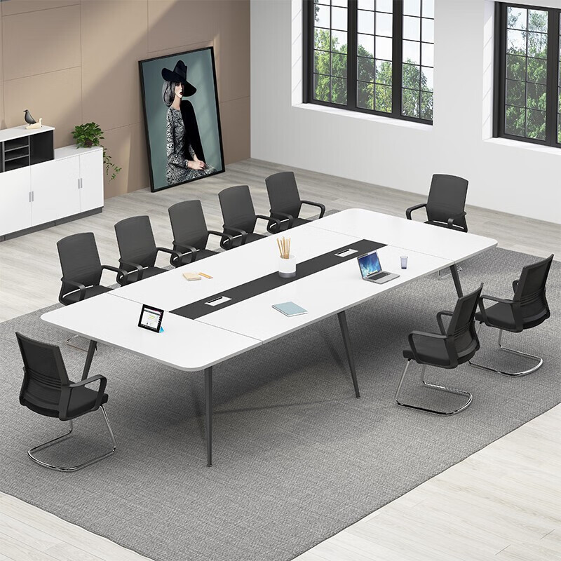 Meja konferensi panjang, sederhana modern putih 6-10 orang ruang konferensi meja negosiasi kantor meja oval dan kombinasi kursi