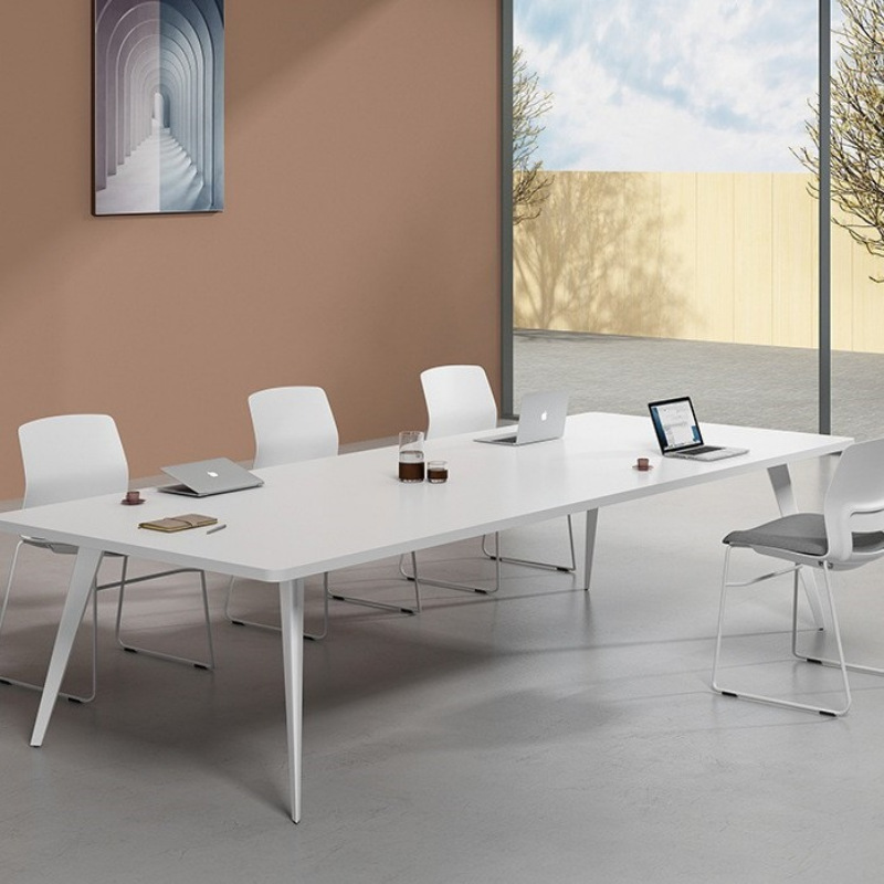 Meja panjang konferensi cat, furnitur modern sederhana meja negosiasi putih sedang dan besar, meja konferensi ruang kantor dan kursi kombinasi