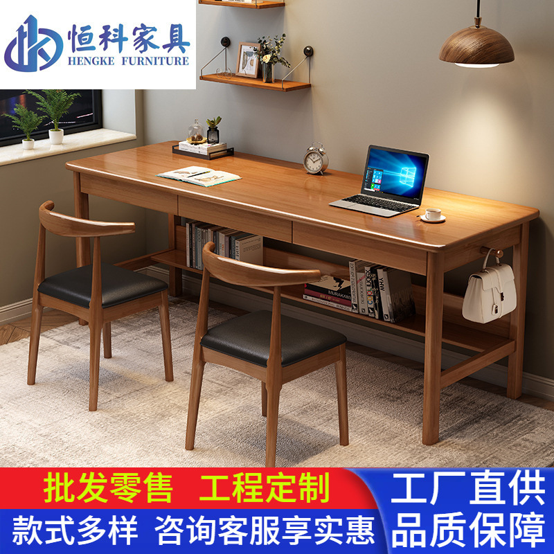 Meja panjang kayu padat, meja komputer rumah kantor meja konferensi sederhana ganda tiga orang