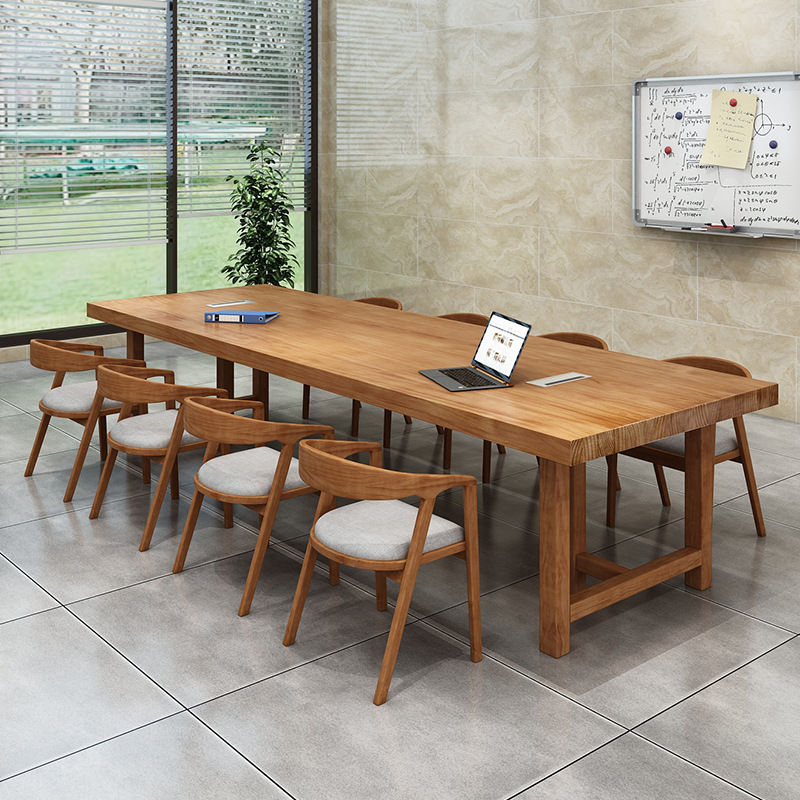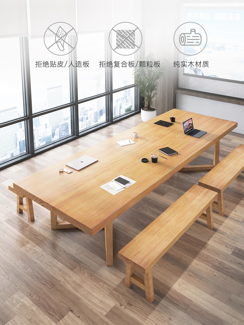 Meja panjang kayu padat, meja konferensi besar meja komputer modern sederhana ruang konferensi multi-orang negosiasi set meja dan kursi