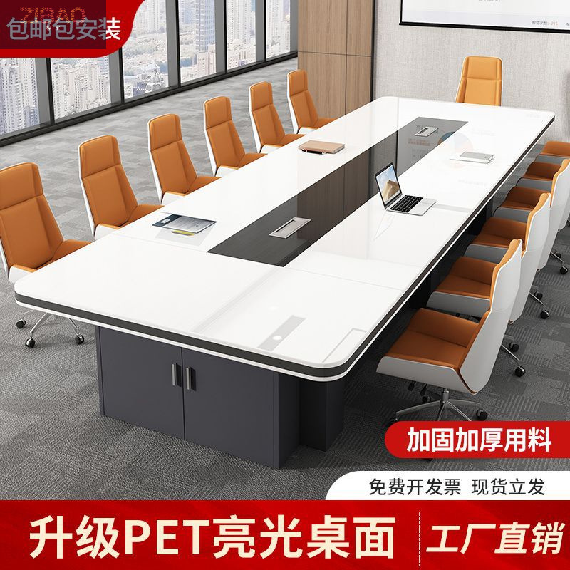 Meja konferensi meja panjang, sederhana ruang konferensi modern besar meja kantor dan kursi kombinasi multi-fungsi meja negosiasi terang hewan peliharaan