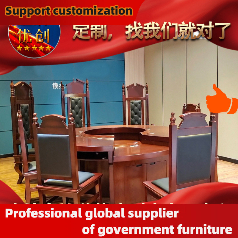 Meja ruang konferensi pemerintah besar tradisional Tiongkok, kombinasi kursi dan meja bangunan pesta konferensi meja panjang kombinasi meja pertemuan banyak orang