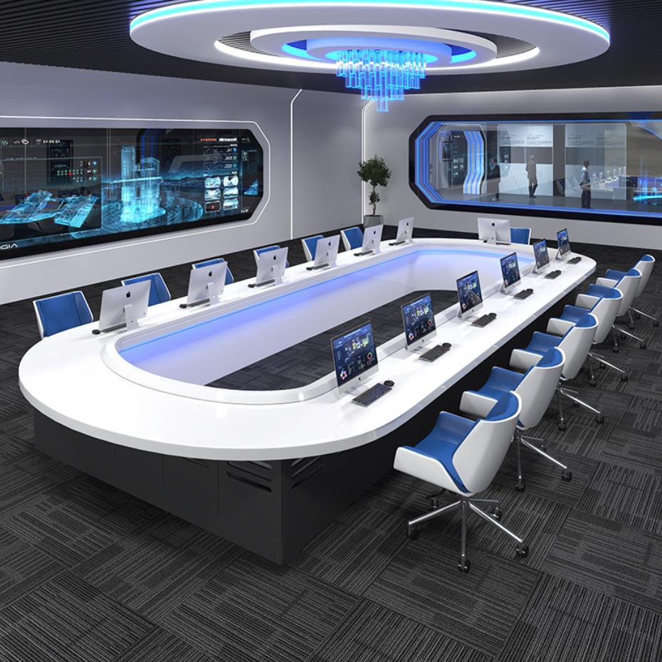 Cat piano fesyen bentuk U meja konferensi multimedia, konsol meja berbentuk O teknologi modern arc rostrum