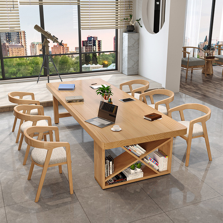 Meja konferensi kayu Solid, strip kreatif meja papan lebar ruang konferensi modern ruang konferensi banyak orang