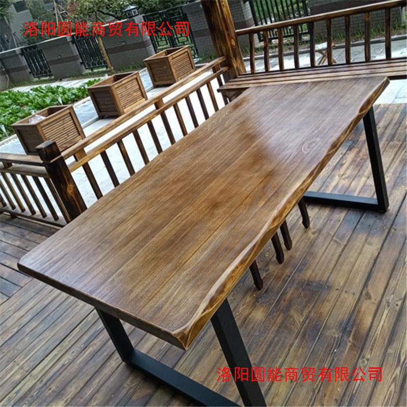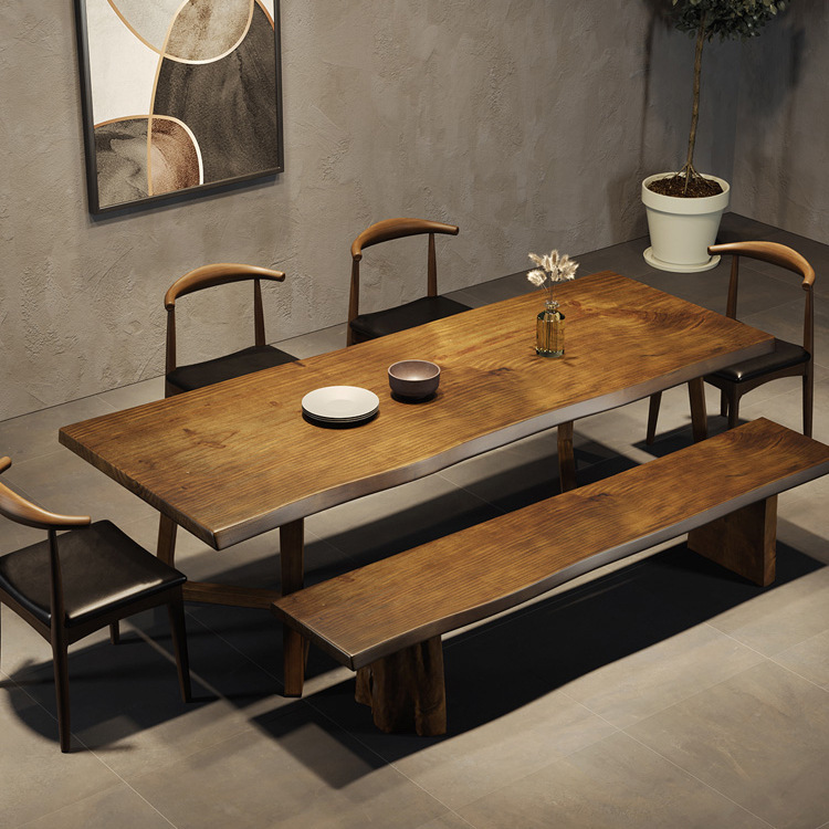 Meja panjang konferensi kayu solid seluruh papan, meja teh log ruang tamu sisi alami meja papan besar sederhana