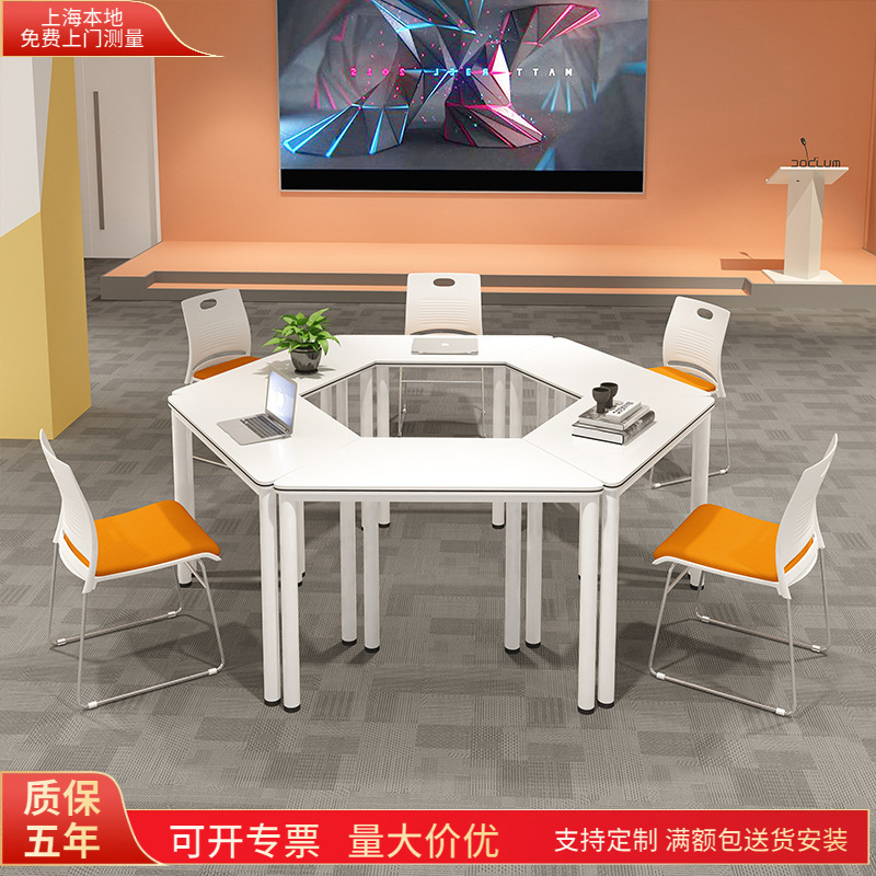 Meja tangga Sederhana modern meja splicing heksagonal dan kursi, pelatihan sekolah unit lembaga pendidikan meja pelatihan konferensi dan kursi