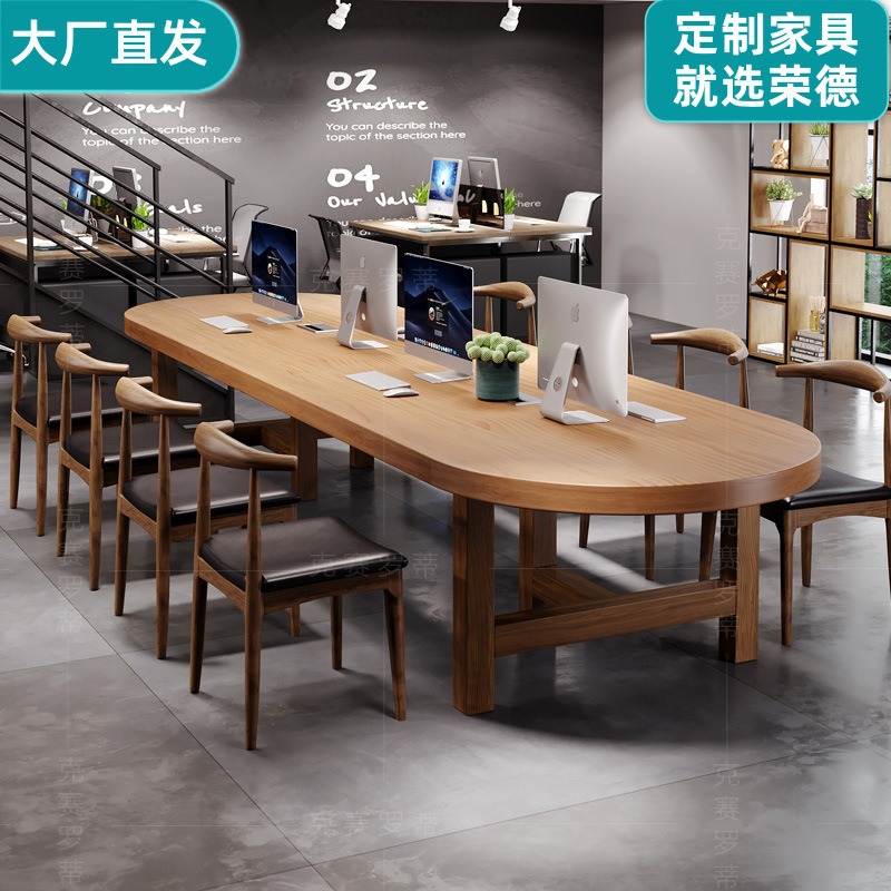 Meja konferensi kayu padat loteng modern meja negosiasi kantor Amerika meja kerja log panjang meja papan besar meja panjang sederhana