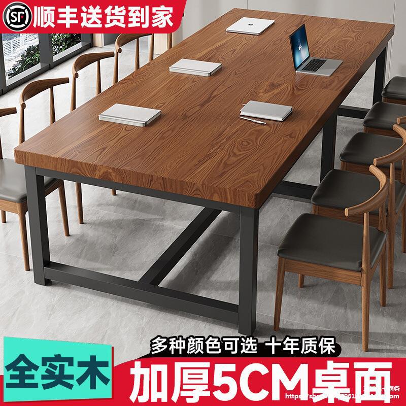 Meja panjang konferensi, Nordic multi-orang kayu solid meja panjang perusahaan gaya industri meja kantor dan kursi kombinasi meja pelatihan besi