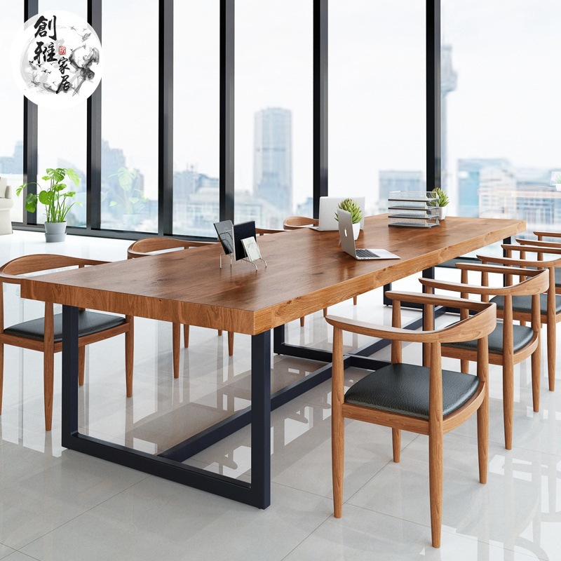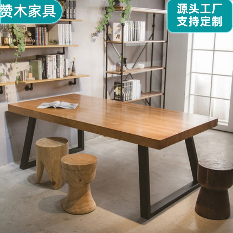 Meja Makan besi padat kayu, meja komputer persegi panjang retro sederhana, papan besar kreatif meja konferensi