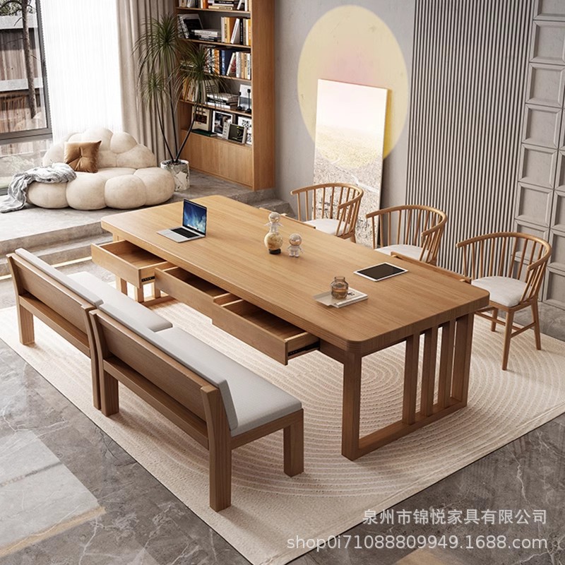 Meja Panjang Kombinasi Meja Kerja dan Kursi Kayu Solid Nordik Meja Kerja Modern Sederhana Ruang Tamu Rumah Tangga Meja Belajar dengan Laci