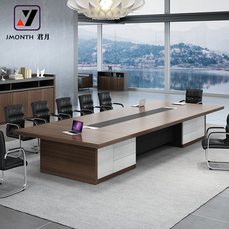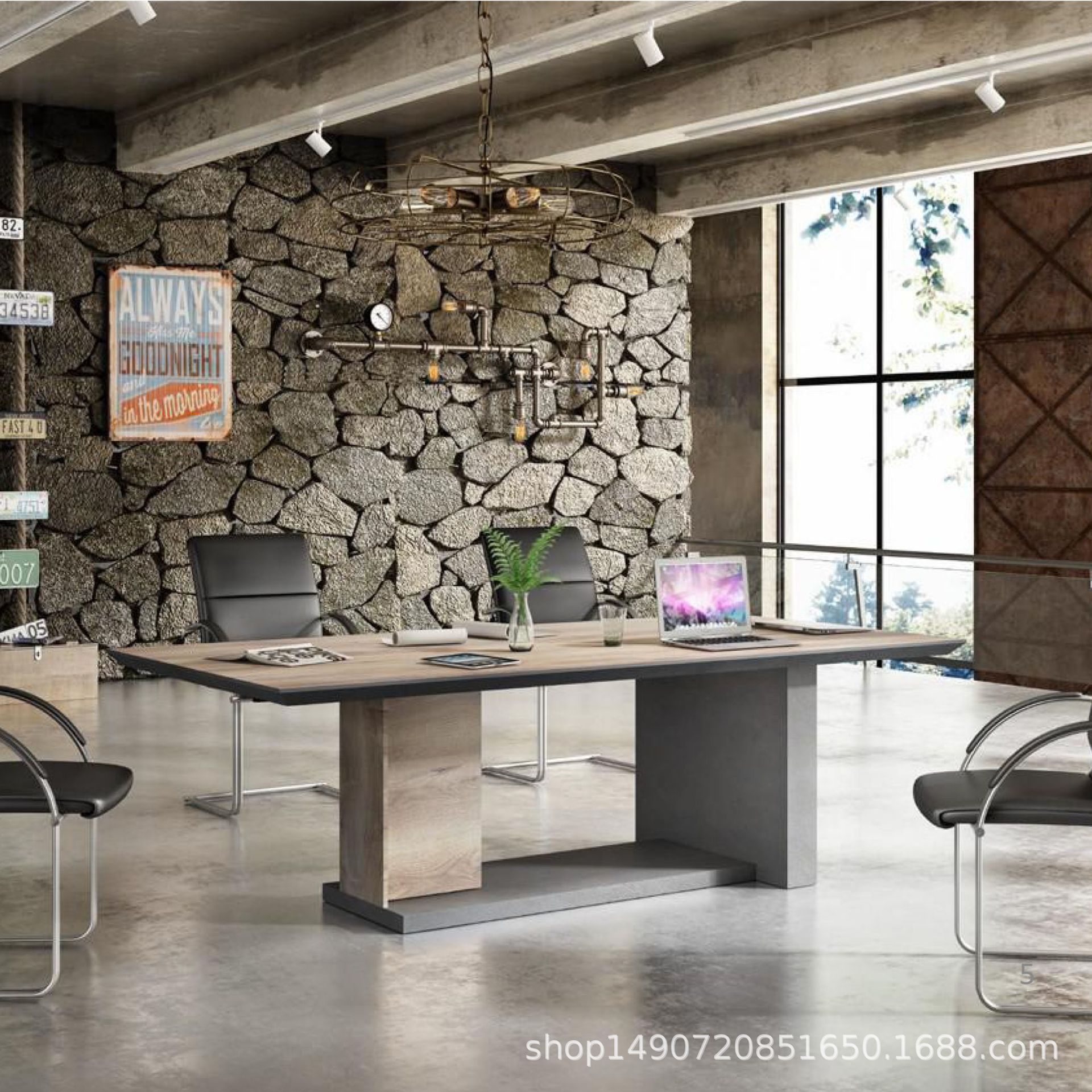 Meja kayu padat besi tempa Modern meja konferensi negosiasi bisnis kantor meja panjang latihan staf perusahaan besar