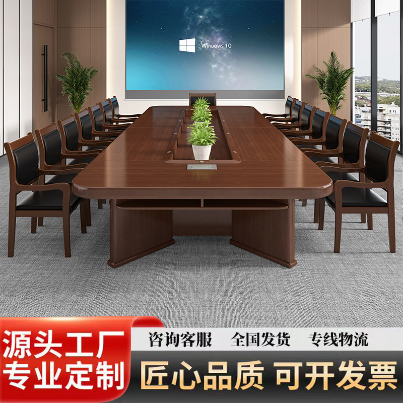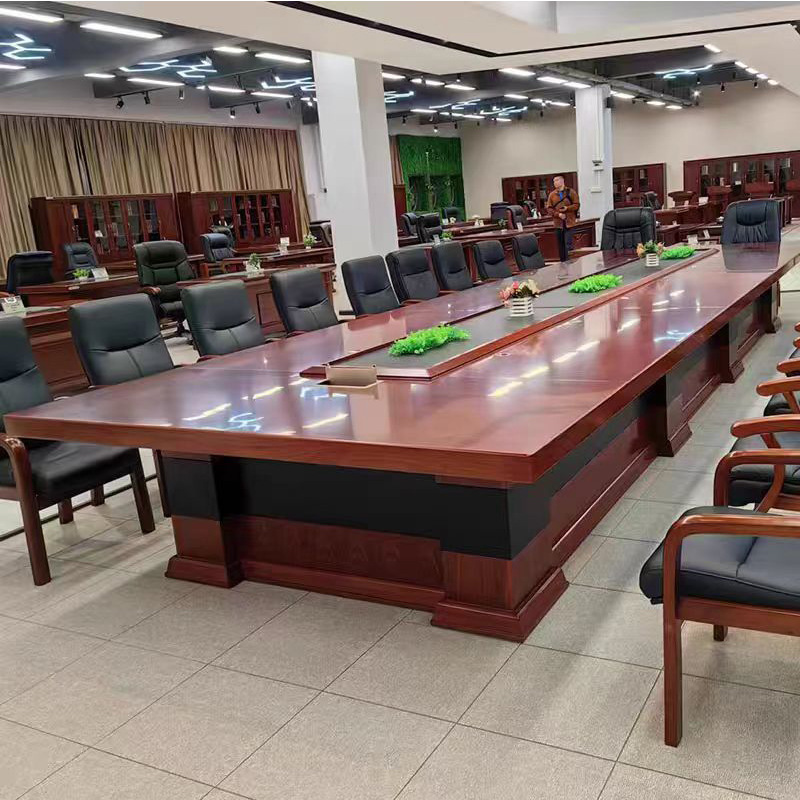Meja panjang veneer kayu padat besar, cat ruang konferensi meja konferensi meja pertemuan banyak orang meja oval dan kursi kombinasi