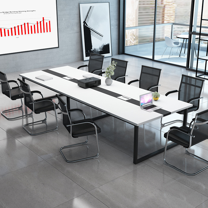 Meja Konferensi Cat Besar Meja Negosiasi Putih Fashion Meja Panjang Sederhana Modern Ruang Pertemuan Meja Kerja Kursi Kombinasi