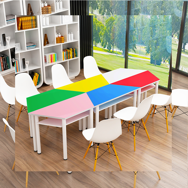 Meja tangga Sederhana modern meja splicing heksagonal dan kursi, pelatihan sekolah unit lembaga pendidikan meja pelatihan konferensi dan kursi