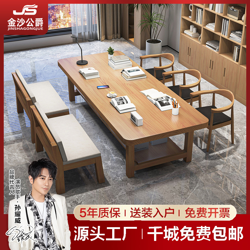 Meja negoisasi meja konferensi panjang, sederhana modern besar kayu polos kombinasi kursi meja kerja latihan log