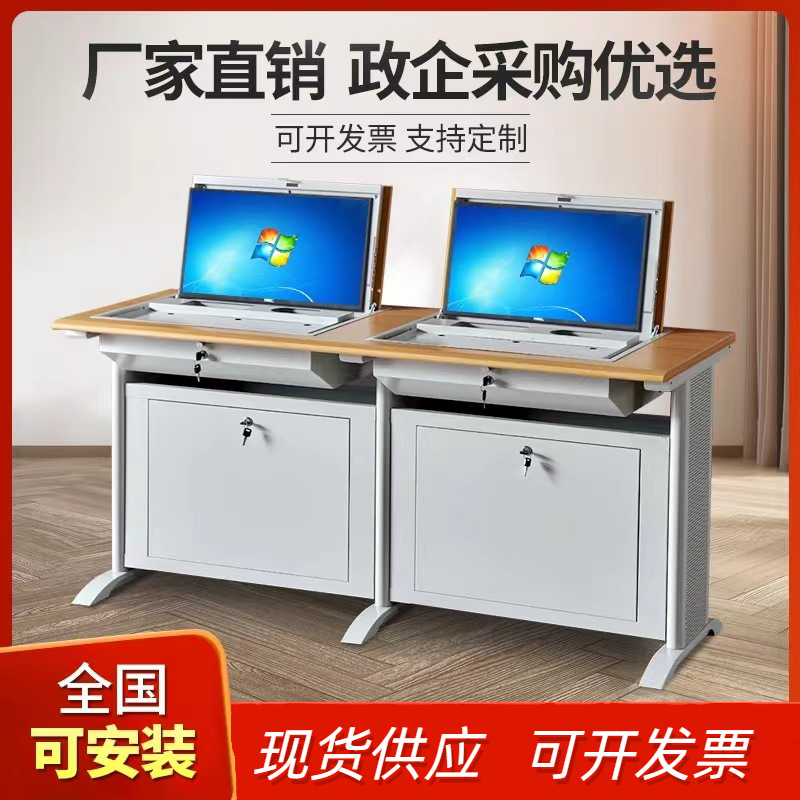 Meja latihan meja komputer Flip, pusat data sekolah meja komputer tersembunyi semi-tanam meja siswa multifungsi tunggal