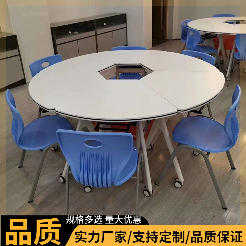 Meja konferensi lipat Polygon, cincin meja konferensi splicing, pusat latihan sekolah, meja siswa dan kursi kombinasi