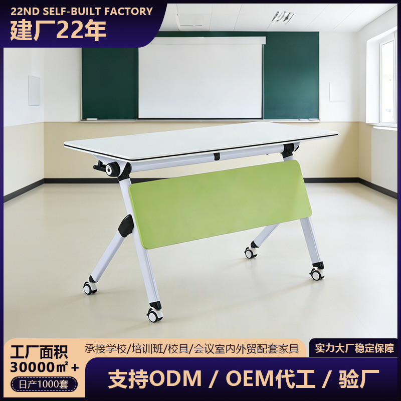 Meja pelatihan lipat, kursi dan meja konferensi komputer kantor sederhana flip roller skating dapat digerakkan meja baca dan tulis panjang
