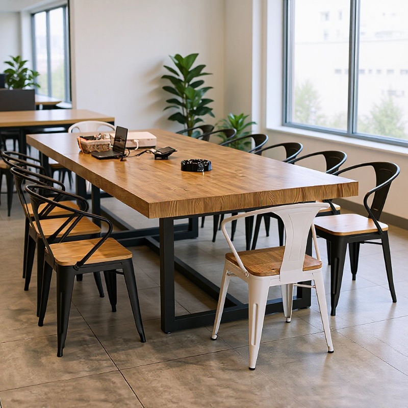 Meja panjang konferensi kayu polos, Meja modern sederhana gaya industri meja panjang meja negosiasi loteng dan kombinasi kursi
