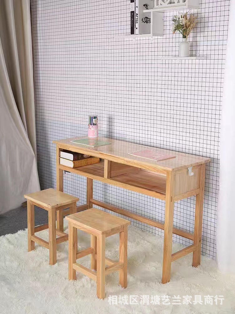 Meja dan kursi kayu padat, Meja belajar tunggal rumah meja kayu kuno latihan sekolah pelajar sekolah dasar dan sekunder