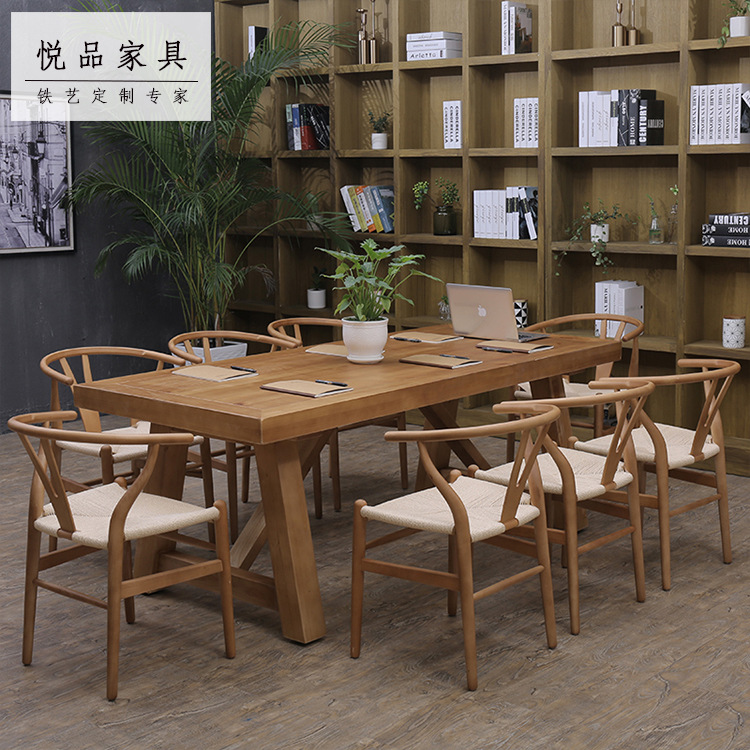 Meja kantor negosiasi kecil, furnitur besi kayu padat meja konferensi meja panjang sederhana meja makan modern