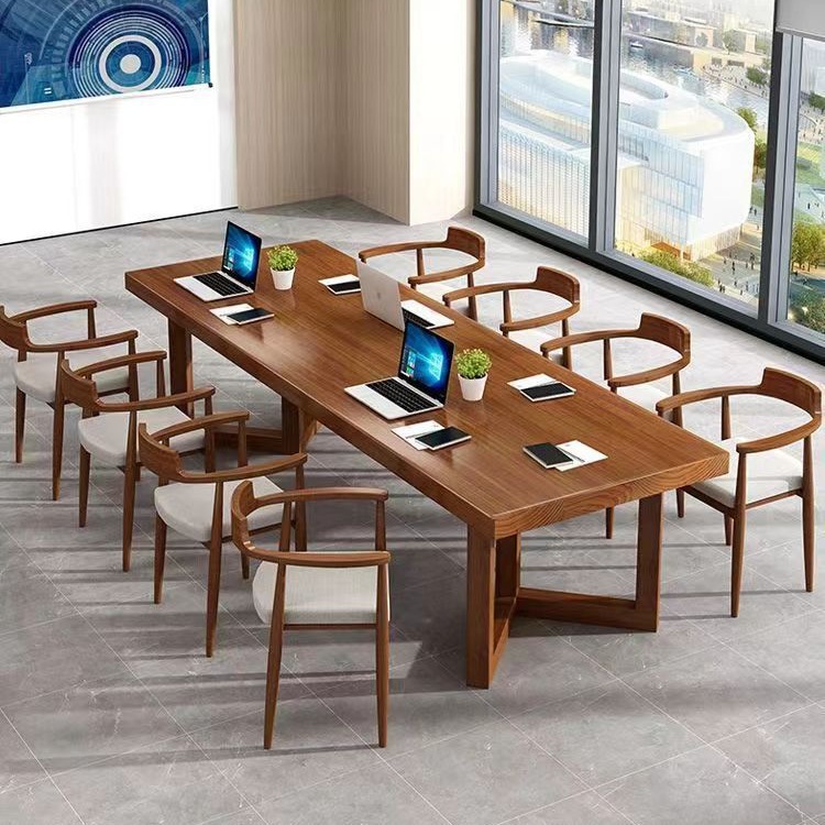 Meja konferensi meja komputer kayu polos, sederhana modern meja panjang meja negosiasi dan kursi kombinasi rumah ruang tamu meja kantor dan kursi