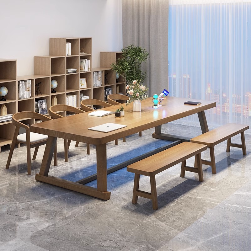 Meja Konferensi Kayu Solid Sederhana Ruang Baca Perpustakaan Modern Meja Panjang Kursi Kombinasi Meja Kerja Kantor