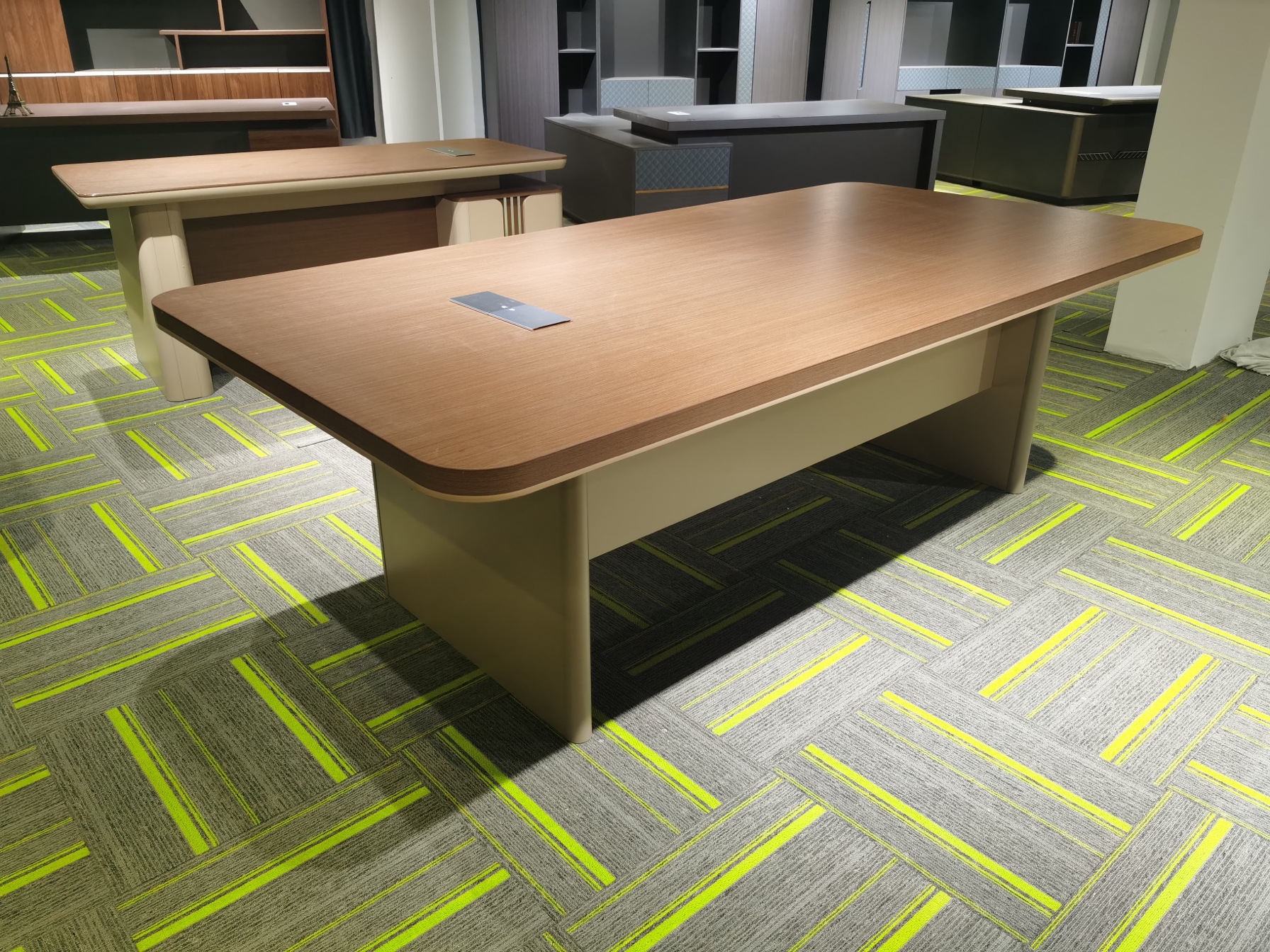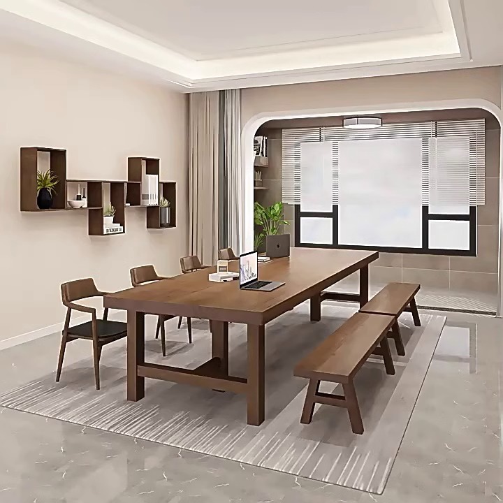 Meja panjang konferensi mebel kantor, platform cat meja panjang negosiasi dan kursi meja perusahaan meja tradisional bahan kulit kayu meja panjang
