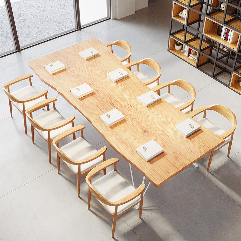Meja konferensi panjang log sederhana Modern, Meja negosiasi mewah ringan kayu solid dan kursi staf meja latihan Bisnis