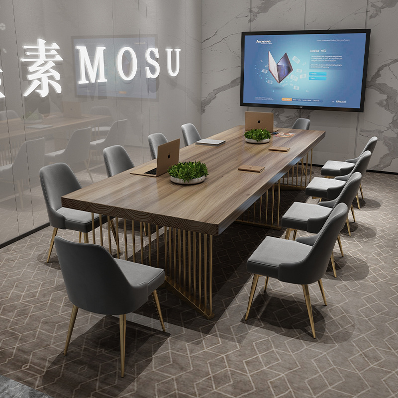 Meja panjang konferensi kayu solid, Amerika, Meja pelatihan besi kantor besar kreatif meja kantor staf kantor dan kursi