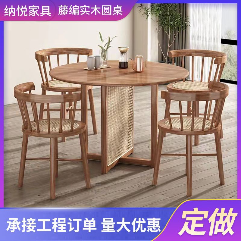 Meja Bundar rotan gaya Jepang ins meja negosiasi rumah ruang tamu dan kursi kombinasi retro kayu solid meja Bulat rotan