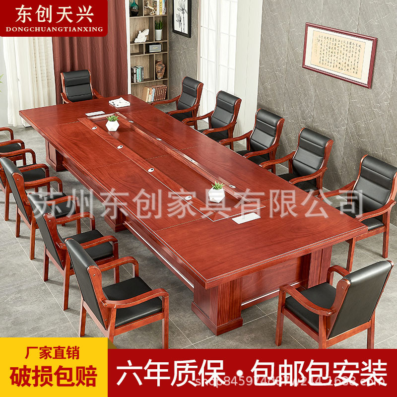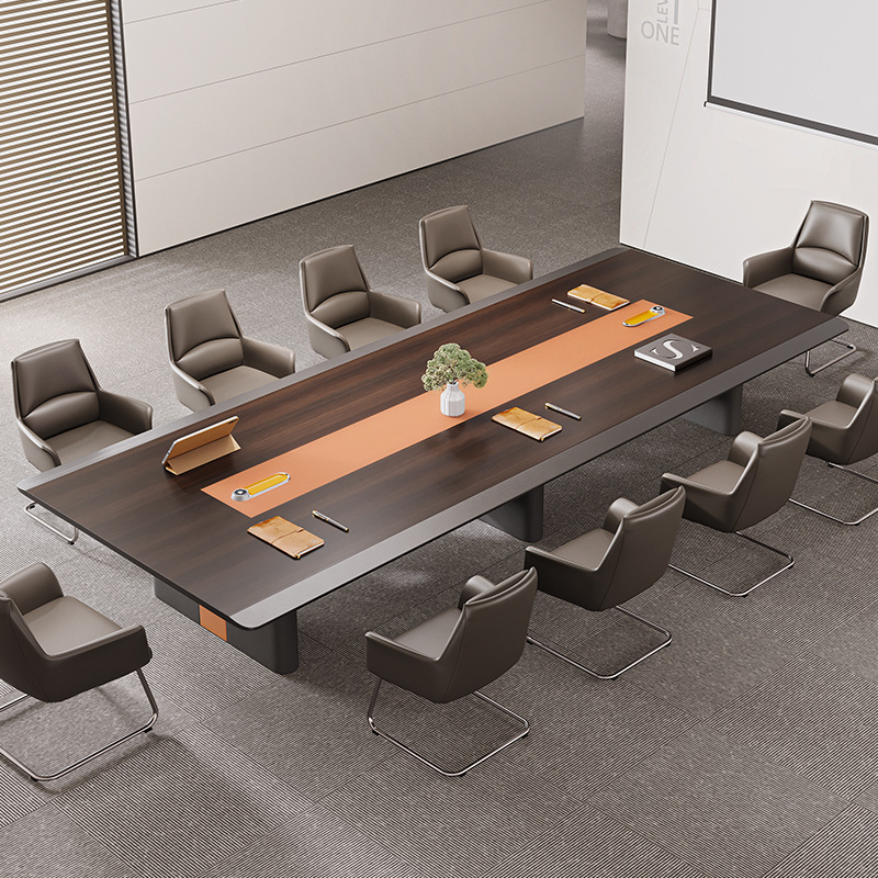 Meja konferensi banyak orang, Stiker cat meja latihan besar, Meja negosiasi kulit kayu solid dan kombinasi kursi