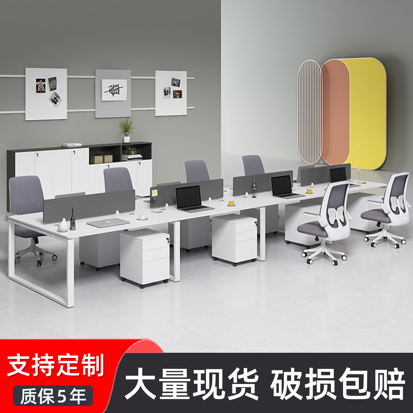 Meja kantor dan kursi Guangzhou, kombinasi meja staf putih, posisi Staf 2/4/6, posisi layar modern sederhana, stok tersedia