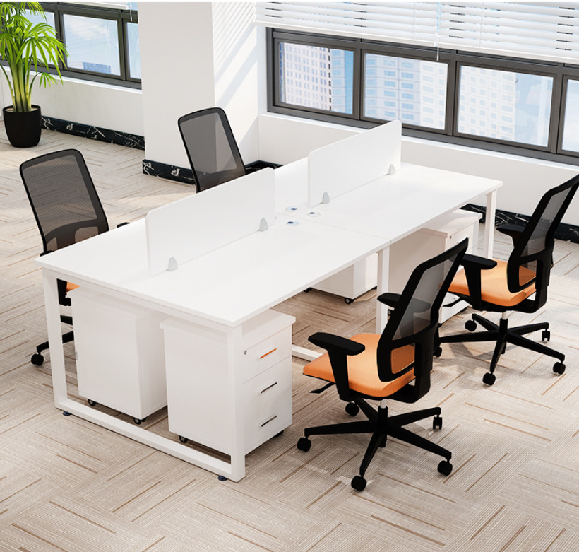 Meja Keuangan Modern Sederhana Model Baru Meja Kerja Staf Kantor Meja Kursi Kombinasi Kursi Meja Komputer Tempat Kartu Layar 4 Orang