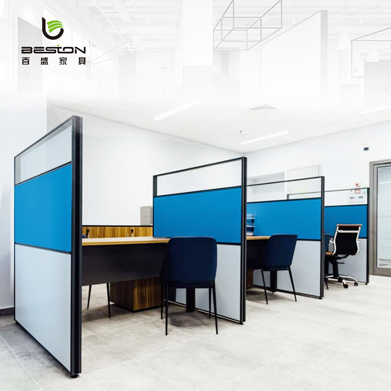 Kombinasi meja kantor dan kursi, stasiun staf modern sederhana ganda 46 layar partisi pemegang kartu meja Keuangan kantor