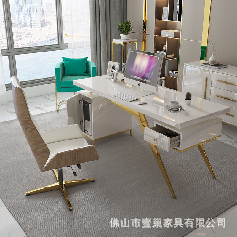 Pelat cat meja kantor minimalis modern, tulis meja kantor presiden meja kantor multi-spesifikasi dengan kabinet dapat bergerak
